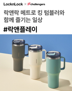 락앤락은 최근 출시한 ‘메트로 킹 텀블러’와 함께 즐기는 일상을 주제로 오는 8일까지 챌린저스 어플리케이션을 통해 참가자 500명을 모집한다. 최종 참가자는 6월 9일 발표하고, 챌린지 기간은 6월 14일부터 20일까지 진행된다.