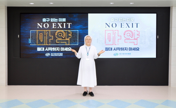 (대구=NSP통신) 최병수 기자 = 대구파티마병원 김선미 병원장은 지난 8일 마약 중독의 위험성과 경각심 고취를 위해 경찰청이 마련한 마약 예방 ‘NO EXIT’ 릴레이 캠페인에 참여했다.
