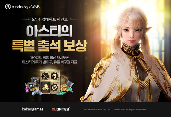 아키에이지 워의 서비스 100일을 기념하는 ‘아스티 특별 출석 이벤트’도 함께 시작됐다.