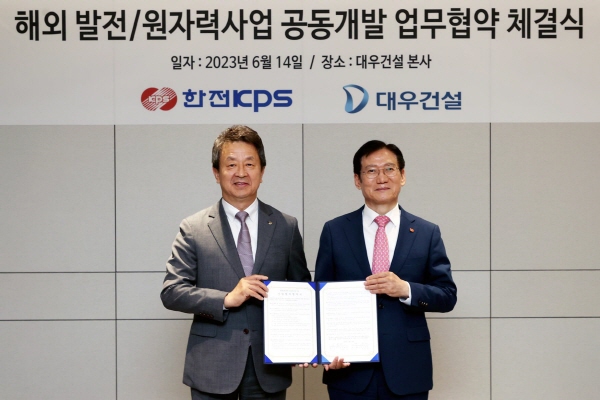 (서울=NSP통신) 정의윤 기자 = 대우건설(대표 백정완)은 지난 14일 한전KPS와 해외발전 및 원자력분야 해외사업 협력을 위한 양해각서(MOU)를 체결했다고 15일 밝혔다.