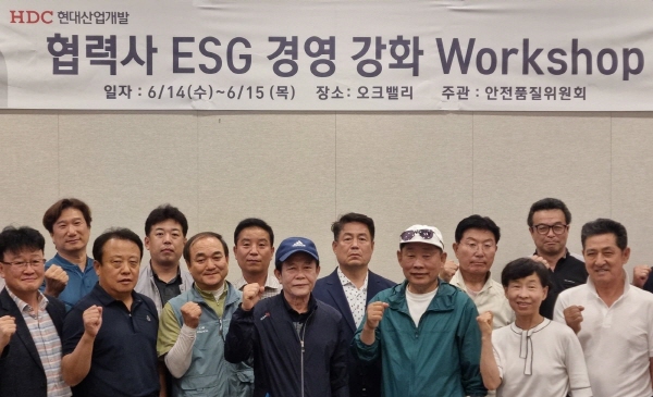 HDC현대산업개발은 지난 14일부터 15일까지 2일간 우수협력사 및 안전품질위원회 소속 협력사오 ESG경영 강화 워크숍을 개최했다고 밝혔다.