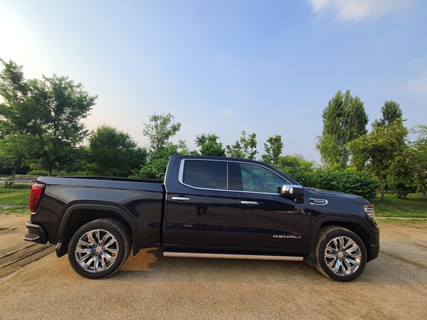 시승에 사용된 풀사이즈 픽업트 GMC 시에라 드날리는 전장 5890mm, 전폭 2065mm, 전고 1950mm의 거함으로 6.2L V8 직분사 가솔린 엔진과 10단 자동변속기 조합으로 최고 출력 426마력, 최대토크 63.6kg·m의 폭발적 성능을 발휘한다.