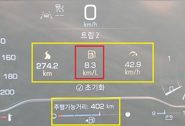 총 274.2km를 42.9km/h의 평균속도로 주행한 후 체크한 GMC 시에라 드날리의 실제 연비는 놀랍게도 8.3km/ℓ를 기록했다.