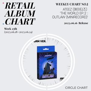 써클차트가 26일 공개한 2023년 25주차(06.18~24) 리테일 앨범차트에 따르면 에이티즈는 지난 16일 발매한 아홉 번째 미니 앨범 ‘THE WORLD EP.2 : OUTLAW (MINIRECORD)’(더 월드 에피소드 2 : 아웃로우 (미니레코드). 이하 ‘OUTLAW’)가 집계 기준이 되는 한 주 동안 가장 많은 판매량인 29만9970장을 기록해 1위 자리에 올랐다.