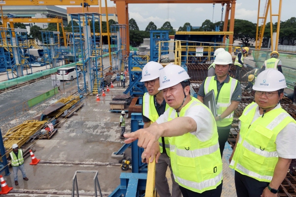 (서울=NSP통신) 정의윤 기자 = 대우건설은 백정완 대표가 지난 6월 26일부터 29일까지 싱가포르를 방문해 시공 중인 현장을 찾아 임직원을 격려하고 현지 건설 시장상황을 점검했다고 29일 밝혔다. 또 28일에는 싱가포르 육상교통청(LTA, Land Transport Authority)을 방문해 응 랑(NG Lang) LTA 청장을 면담했다고 밝혔다.
