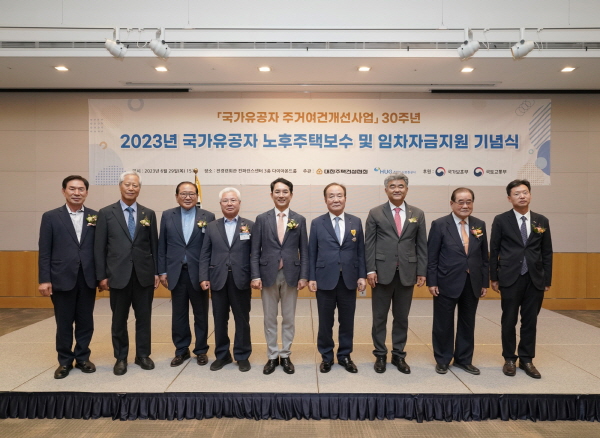(서울=NSP통신) 정의윤 기자 = 대한주택건설협회와 주택도시보증공사(HUG)는 지난 29일 서울 영등포구 여의도동 소재 전경련회관 컨퍼런스센터에서 ‘2023년도 국가유공자 노후주택보수 및 임차자금전달 기념식’을 공동으로 가졌다고 밝혔다.