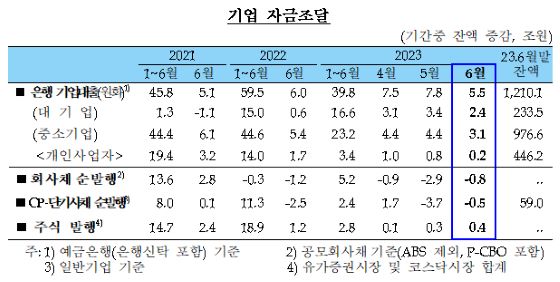 6월 기업대출 5조5천억원 증가…역대 6월 중 두 번째 큰 규모