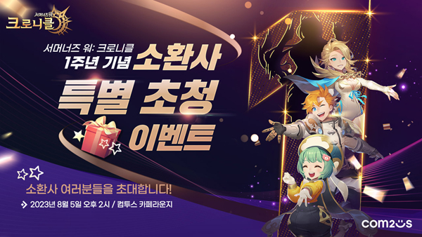 (서울=NSP통신) 이복현 기자 = 컴투스(대표 이주환)가 소환형 RPG 서머너즈 워: 크로니클(이하 크로니클) 출시 1주년을 기념해 소환사 특별 초청 이벤트를 개최한다.