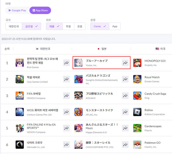 #넥슨게임즈(225570) #블루아카이브 #日서비스2.5주년 #日1위