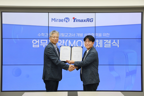 (서울=NSP통신) 이복현 기자 = 티맥스알지가 지난 17일 미래엔과 수학 교과 AI 디지털 교과서 개발을 위한 업무협약(MOU)을 체결했다.