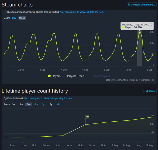 이후로도 각종 지표에서 꾸준히 우상향 그래프를 그렸고, 지난 9월 7일 동시 접속자 수 3만명을 돌파하며 인기를 이어가고 있다.
