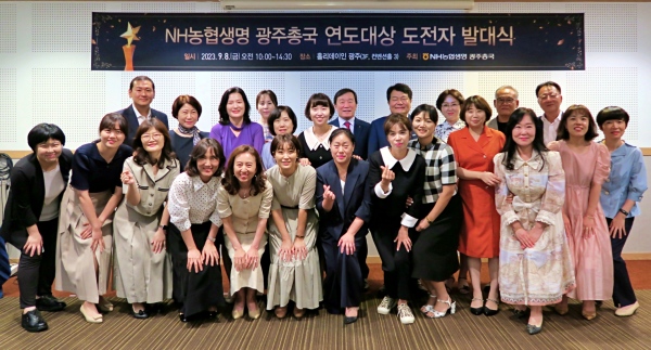 (광주=NSP통신) 김용재 기자 = NH농협생명 광주총국(총국장 김동옥)은 최근 광주시 서구 치평동에 위치한 홀리데이인 광주호텔에서 광주 관내 지역농협 임직원을 대상으로 ‘2023년 NH농협생명 연도대상 도전 발대식’을 개최했다.