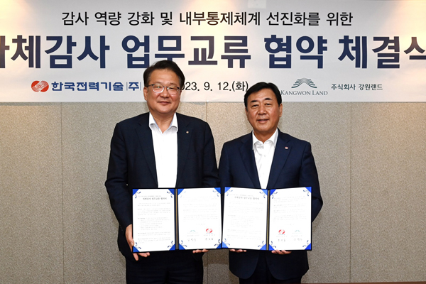 (서울=NSP통신) 이복현 기자 = 강원랜드(대표 이삼걸)가 12일 경북 김천 한국전력기술 본사에서 한국전력기술(사장 김성암)과 감사업무 교류 및 지원 업무협약을 체결했다.
