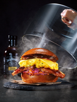 ‘엑스트라 스모키 베이컨 w. 잭다니엘 BBQ(11,800원)’는 오랜 시간 수비드 기법으로 조리해 촉촉한 식감을 자랑하는 수비드 베이컨을 애플우드로 2차례 훈연해 스모키한 풍미를 살린 제품으로, 훈연 연기로 가득 찬 투명한 돔 안에 제품을 담아 제공하는 다이닝 퍼포먼스가 특징이다. 또한, 테네시 위스키 특유의 그윽한 향을 자랑하는 ‘잭다니엘 허니 BBQ’ 소스와 동물복지달걀로 만든 스크램블드에그, 코울슬로, 할라피뇨를 토핑으로 더했고, 3500원 추가 시 스파이시 시즈닝으로 매콤한 맛을 더한 쉬림프 토핑을 곁들일 수 있다.