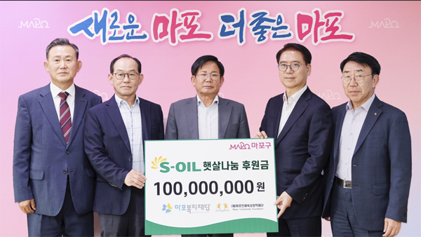 (서울=NSP통신) 이복현 기자 = 에쓰오일(대표 안와르 알 히즈아지 S-OIL)이 12일 서울 마포구청에서 마포인재육성장학재단과 마포복지재단에 저소득가정 학생들과 지역사회 후원을 위하여 총 1억원을 전달했다.