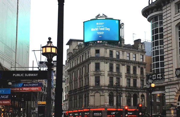 (서울=NSP통신) 이복현 기자 = LG전자(대표 조주완)가 현지시간 10일부터 22일까지 세계 식량의 날(10월 16일)을 맞아 미국 뉴욕 타임스스퀘어와 영국 런던 피카딜리광장에 있는 옥외전광판에서 세계 식량의 날 캠페인 영상을 상영한다.