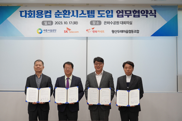 (서울=NSP통신) 이복현 기자 = SK텔레콤(대표 유영상)이 세종특별자치시시설관리공단, 사회적기업 행복커넥트, 왕산두레마을협동조합과 함께 은하수공원에 다회용 컵 순환 시스템을 도입하기 위한 업무협약을 체결했다고 밝혔다.