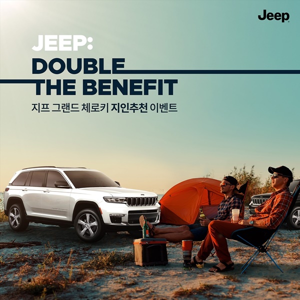 ‘지프: 더블 더 베네핏’은 지프 공식 전시장에서 출고한 기존 지프 오너(차종무관)의 소개로 이벤트 기간동안 그랜드 체로키 라인업을 구매한 모든 신규 고객을 대상으로 한다. 신차 출고 후 소개한 추천 오너에게는 백화점 상품권(제세공과금 고객 부담) 또는 지프 텐트를, 신규 고객에게는 보증 연장 또는 오토 파워 사이드 스텝을 혜택으로 제공한다.