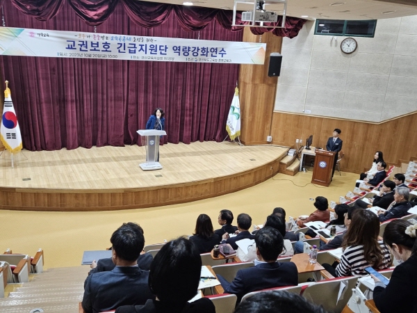 이날 연수는 긴급지원단 70여 명을 대상으로 △‘교권4법’ 의 개정과 대응 방안 △교권보호 긴급지원단의 역할과 사안 처리 절차 △교권이 존중되는 학교문화를 위한 교육활동 보호 방안 등에 대해 연수를 진행했다.