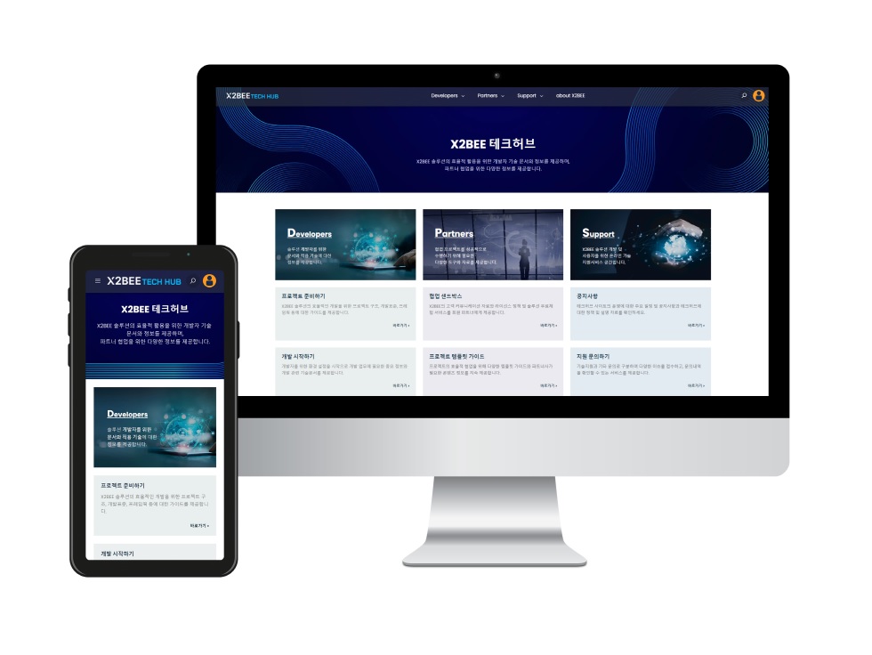 엑스투비 테크허브는 엑스투비 솔루션 개발 시 필요한 다양한 기술문서와 온라인 기술 지원 서비스 등을 제공하고, 헤드리스 커머스 구현을 위한 API를 명시한다. 이를 통해 파트너사의 개발 인력 뿐만 아니라 도입 고객사의 운영 인력까지 개발 관련 지식과 협업 활동을 공유할 수 있다.
