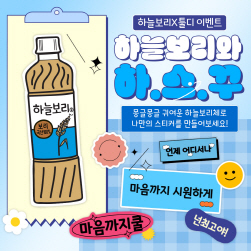웅진식품 자사 SNS에서는 하늘보리체 스티커 출시를 기념해 ‘하늘보리와 하.스.꾸(하늘보리체 스티커 꾸미기)’ 이벤트를 진행한다. 툴디에서 하늘보리체를 활용한 ‘나만의 스티커’를 만들고 인스타그램 스토리에 필수 해시태그와 함께 인증샷을 올리면 참여 가능하다. 이벤트 참여 시 100명을 추첨해 직접 만든 하늘보리 스티커 인쇄본 8매를 증정한다.