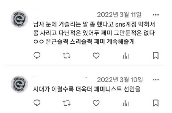 그러면서 “나도 여자이고 게임을 사랑해서 이 업계에 와 있다”며 “게임 사랑한다고 말하지 마, 더러운 X들아. 너희들은 페미(페미니스트)가 아니고 인류 혐오자들이다. 너희들이 좋아하는 여성 인권을 박살내는 파탄자들”이라고 강하게 비판했다.