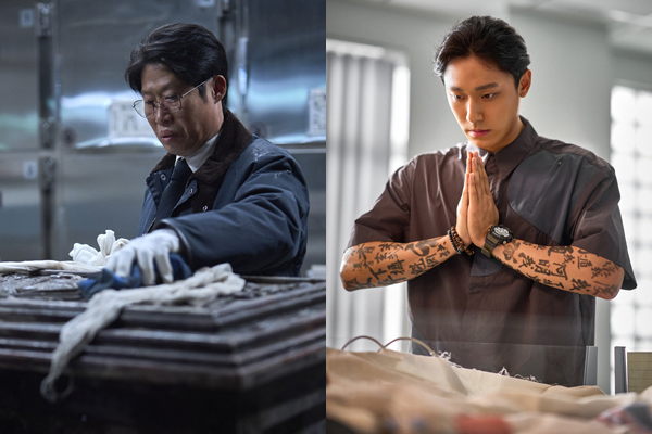 먼저 배우 최민식은 ‘파묘’에서 땅을 찾는 풍수사 ‘상덕’으로 분했다. 직접 흙을 맛보며 신중하게 땅을 대하는 상덕의 진지한 모습은 지금까지 수많은 명당과 악지를 구분했을 그가 한 번도 본 적 없는 불길한 상황에 마주했음을 짐작케 한다.