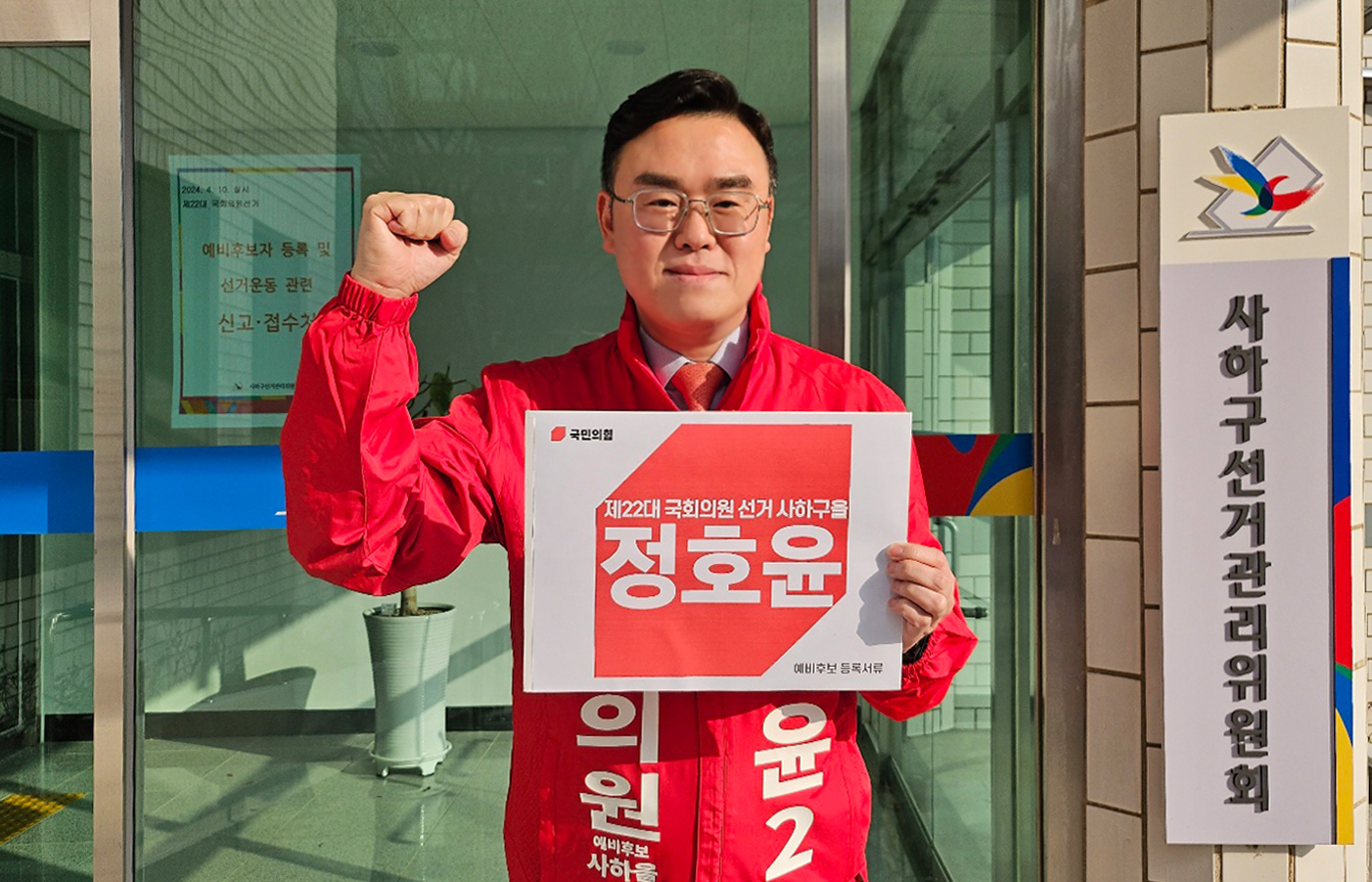 (서울=NSP통신) 김승철 기자 = 정호윤 전 대통령실 공직기강팀장이 사하구을선거구 예비후보에 등록하고 제22대 국회의원선거 출마를 공식 선언했다.