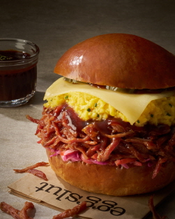 ‘풀드폴크 w.잭다니엘 BBQ’는 지난 9월 출시해 많은 사랑을 받은 ‘엑스트라 스모키 베이컨 w. 잭다니엘 BBQ’의 잭 다니엘 소스를 활용했다. 12시간 가열 후, 애플우드 칩으로 훈연하고 바비큐 양념을 마리네이드해 스모키함과 촉촉한 풍미가 살아있는 풀드폴크가 특징으로, 에그슬럿 시그니처 동물복지달걀 스크램블드 에그, 할라피뇨, 코울슬로, 잭다니엘 허니 BBQ 소스의 조화를 즐길 수 있다.