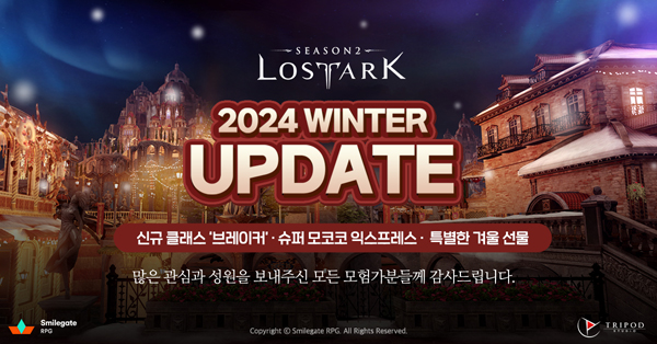 스마일게이트 지원길 대표는 “이번 로스트아크의 겨울 업데이트를 통해 모든 모험가 여러분께 따듯한 추억과 재미를 선사해 드릴 수 있도록 노력하겠다”며 “앞으로도 많은 성원 부탁드린다”라고 밝혔다.