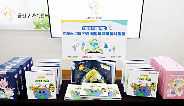 제작된 팝업북은 한국건강가정진흥원을 통해 금천구가족센터 등 기관 산하 7개 지역 가족센터에 학용품 세트와 함께 전달됐다.