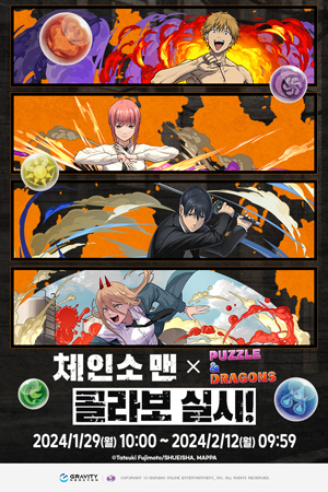 (서울=NSP통신) 이복현 기자 = 모바일 기업 그라비티 네오싸이언가 모바일 퍼즐 액션게임 퍼즐앤드래곤(개발 겅호 온라인 엔터테인먼트)에 애니메이션 ‘체인소 맨’과의 콜라보레이션을 실시한다.