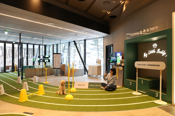 스타벅스 더북한강R점에 마련된 갤럭시 스튜디오 Pet은 펫 맞춤형 놀이공간과 포토 스팟에서 갤럭시 S24 시리즈의 강력한 AI와 카메라 기능을 체험할 수 있도록 꾸며졌다.