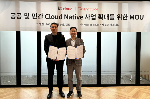 (서울=NSP통신) 이복현 기자 = kt클라우드(대표 황태현)가 클라우드 컴퓨팅 및 디지털전환 전문기업 투라인코드(대표 현승엽)와 공공 및 민간 클라우드 네이티브 사업 확대를 위한 업무협약(MOU)을 체결했다고 밝혔다.