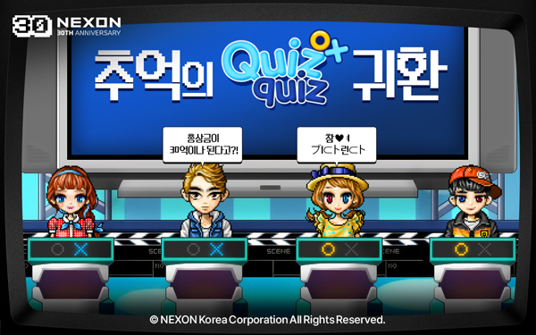(서울=NSP통신) 이복현 기자 = 넥슨(공동 대표 강대현, 김정욱)이 창립 30주년을 기념해 총상금 30억원 규모의 ‘퀴즈퀴즈’ 이벤트를 1일 실시한다.