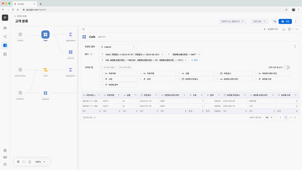 엑셀에 친숙한 마케터라면 누구나 쉽게 설계할 수 있도록 구성됐으며 원본 데이터부터 최종 통합 데이터까지의 도출 과정을 시각화해 데이터 변환 흐름을 한눈에 파악할 수 있는 것이 특징이다.
