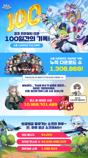 이달 25일에 출시 100일을 맞이하는 소울 스트라이크는 총 130만8868회의 다운로드를 기록했다. 이는 유럽에 위치한 에스토니아 공화국 인구수에 해당하는 수치다.