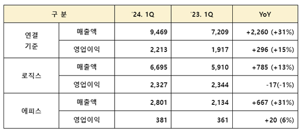 이는 전년 동기 대비 매출은 31%, 영업이익은 15% 각각 증가했다.