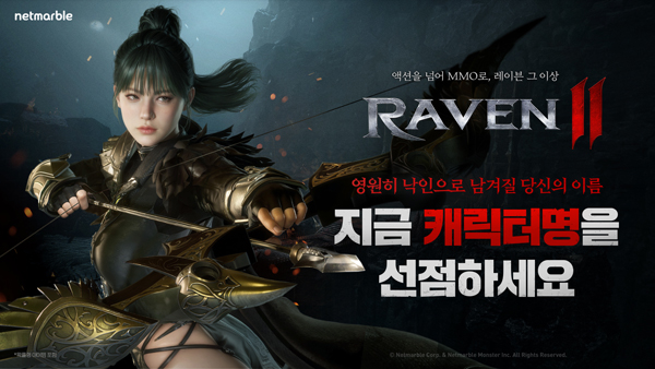 (서울=NSP통신) 이복현 기자 = 넷마블(대표 권영식, 김병규)이 오는 29일 출시를 앞둔 기대작 MMORPG ‘레이븐2’의 캐릭터명 선점 이벤트를 오늘(16일) 오전 11시부터 진행한다.