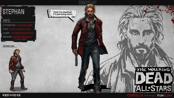 워킹데드: 올스타즈는 펀플로가 개발하고 컴투스홀딩스가 글로벌 서비스하는 수집형 RPG다. 스카이바운드 엔터테인먼트의 워킹데드(The Walking Dead) IP를 활용해 포스트 아포칼립스 상황에서의 생존을 다루고 있다.