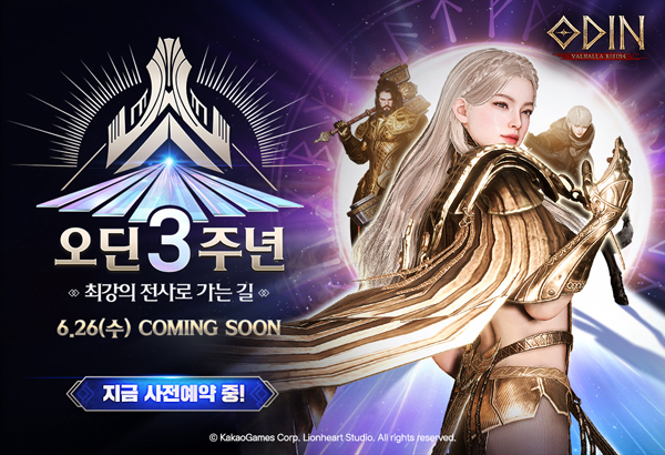 (서울=NSP통신) 이복현 기자 = 카카오게임즈(대표 한상우)가 라이온하트 스튜디오(의장 김재영)에서 개발한 대작 오딘: 발할라 라이징(이하 오딘)의 서비스 3주년 기념 업데이트 사전등록을 실시했다.