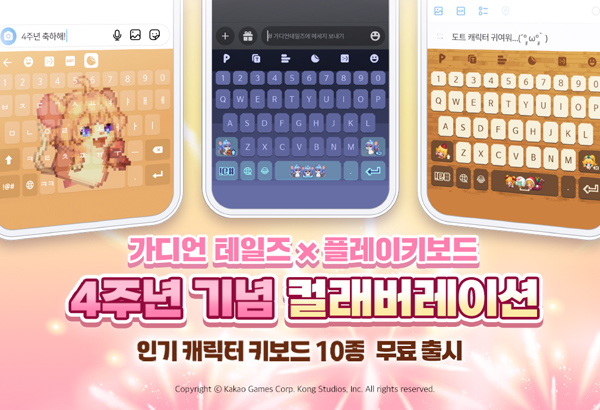 (서울=NSP통신) 이복현 기자 = 카카오게임즈(대표 한상우)가 미국 개발사 콩 스튜디오(대표 원)에서 개발한 모바일 RPG 가디언 테일즈의 서비스 4주년을 맞아 플레이키보드 운영사 비트바이트와 글로벌 컬래버레이션 키보드 테마를 출시했다.