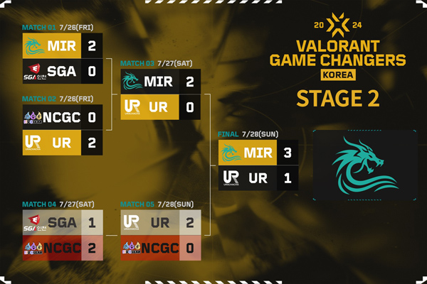 발로란트 게임 체인저스 코리아 본선 4강에는 ▲SGA Incheon ▲Nuclear GC ▲MIR Gaming ▲URACHACHA(구 BSG GC)가 진출했는데 더블엘리미네이션을 거쳐 결승전에는 MIR Gaming과 URACHACHA가 다시 만났다.