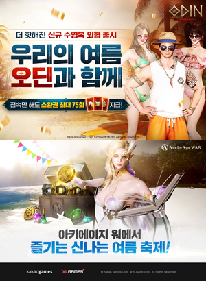 우선 대작 MMORPG 오딘: 발할라 라이징에서는 오는 8월 28일까지 ‘썸머팝 페스티벌’ 이벤트 파티 던전을 오픈한다. 또 21일 동안 출석 이벤트에 참여해 풍성한 보상을 얻을 수 있다.