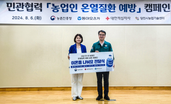 (서울=NSP통신) 박유니 기자 = 동아오츠카(대표 박철호)는 6일 충남 당진시 농업기술센터에서 농촌진흥청, 대한적십자사와 공동으로 ‘민관협력 농업인 온열질환 예방 캠페인’을 벌였다.
