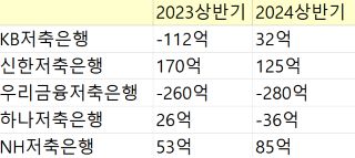 9일 금융권에 따르면 KB저축은행은 올 상반기 32억원의 당기순이익을 기록했다. 지난해 상반기 112억원의 순손실을 낸 이후 흑자전환했다. 신한저축은행은 올 상반기 125억원의 순이익을 거둬들였다. 전년 동기(170억원) 대비 흑자 규모는 줄었다. 같은 기간 NH저축은행은 85억원의 순이익을 기록했다.