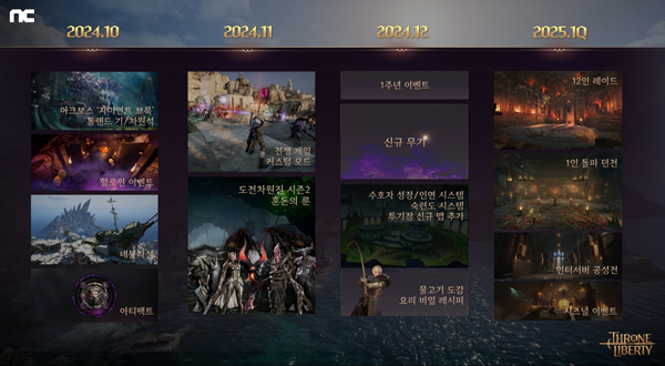 (서울=NSP통신) 이복현 기자 = 엔씨소프트(공동대표 김택진, 박병무, 이하 엔씨)의 MMORPG THRONE AND LIBERTY(쓰론 앤 리버티, 이하 TL)가 개발 로드맵을 공개했다.