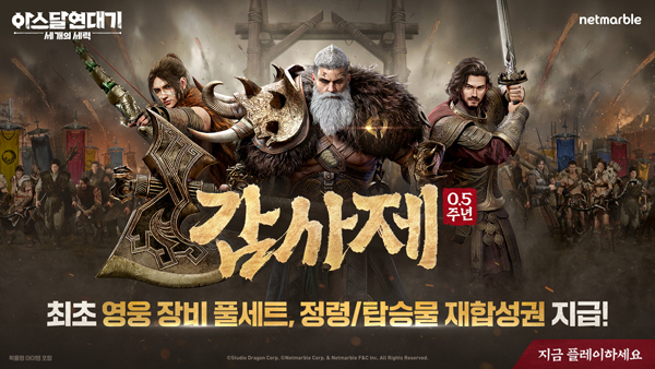 (서울=NSP통신) 이복현 기자 = 넷마블(대표 권영식, 김병규)이 MMORPG 아스달 연대기: 세 개의 세력(개발 넷마블에프앤씨)의 출시 0.5주년을 맞아 감사제 이벤트를 실시한다.