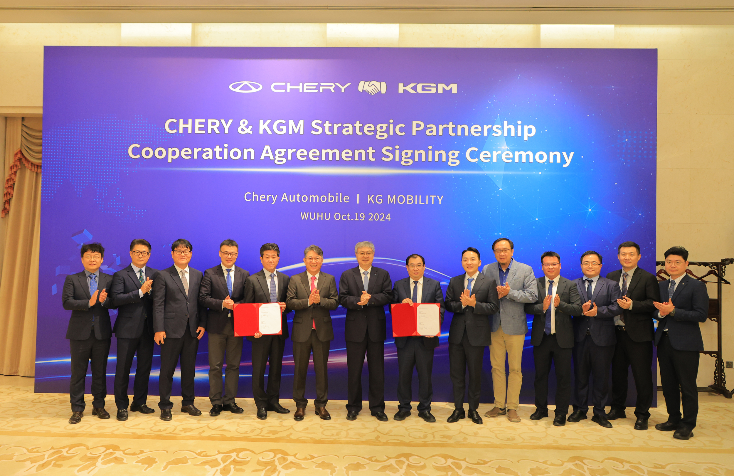 곽재선 KGM 회장은 “KGM은 KG그룹 가족사로 출발하며 토레스 EVX와 액티언 등 신모델은 물론 다양한 상품성 개선 모델 출시를 통해 물량 증대와 함께 글로벌 시장 공략 강화 및 경영 정상화를 성공적으로 추진하고 있다”며 “특히 이번 체리자동차와의 전략적 파트너십 및 기술협력을 통해 보다 다양한 모델 개발과 함께 신차 개발기간 단축 및 고객 니즈에 맞는 신차 출시 등 급변하는 자동차 시장 대응이 가능할 것이다”고 말했다.