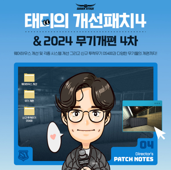 이와 함께 2024 서든패스에서 공개된 무기 일부의 성능을 보완하는 4차 무기개편을 적용한다.
